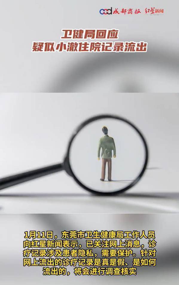 另外,网上还流传一份与其真名一致的住院记录,诊断类型为“梅毒”。1月11日,东莞市卫生健康局工作人员向红星新闻表示,已关注网上消息,诊疗记录涉及患者隐私,需要保护。针对网上流出的诊疗记录是真是假、是如何流出的,将会进行调查核实,后续情况可留意卫健局官微等平台。(据1月11日红星新闻报道)